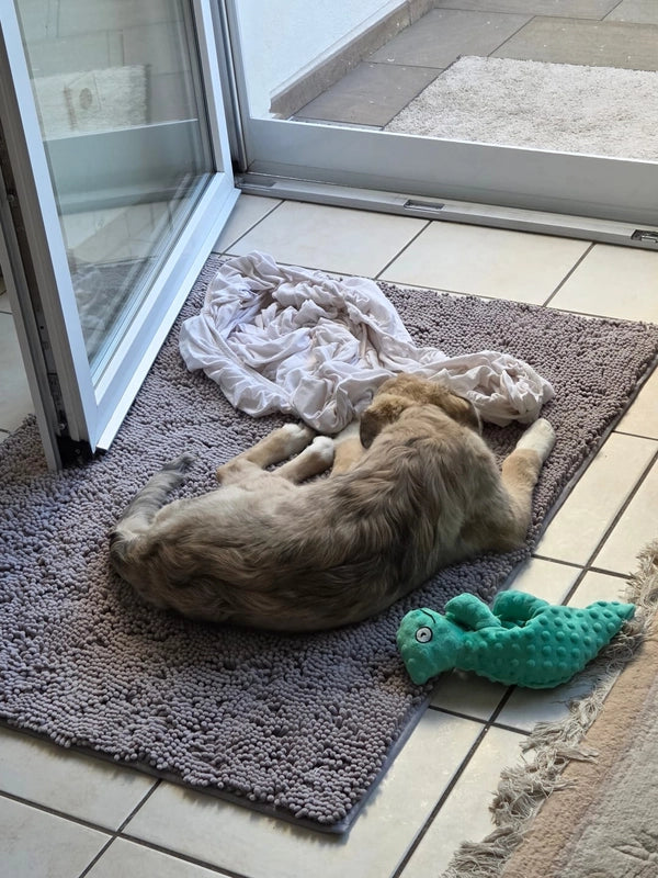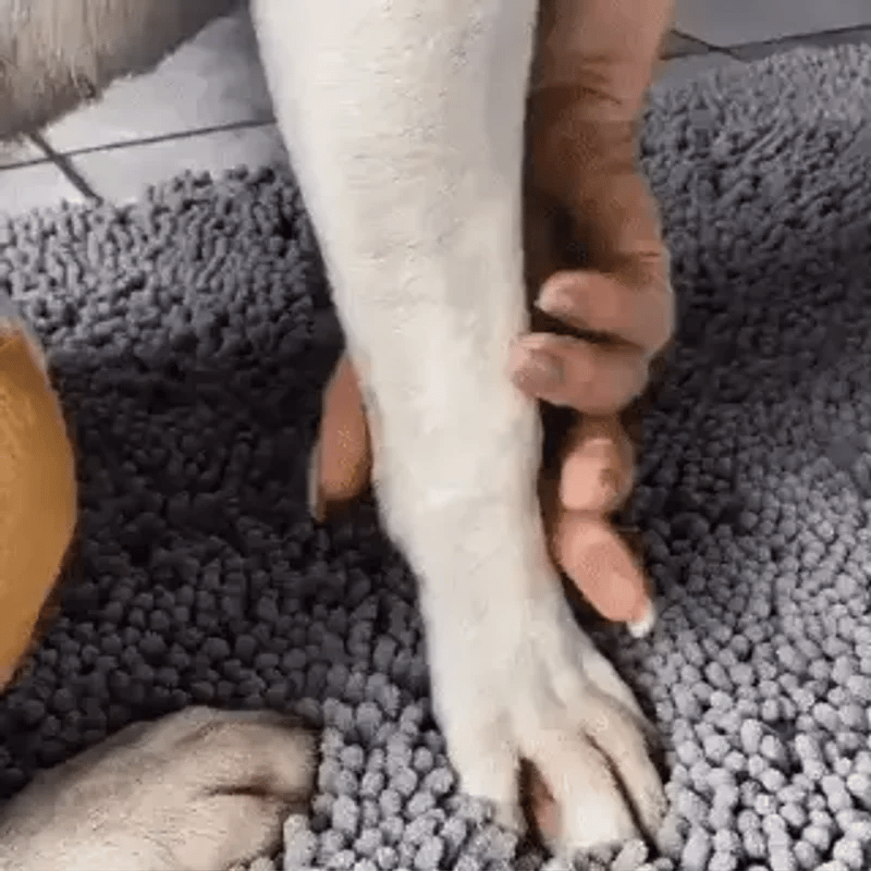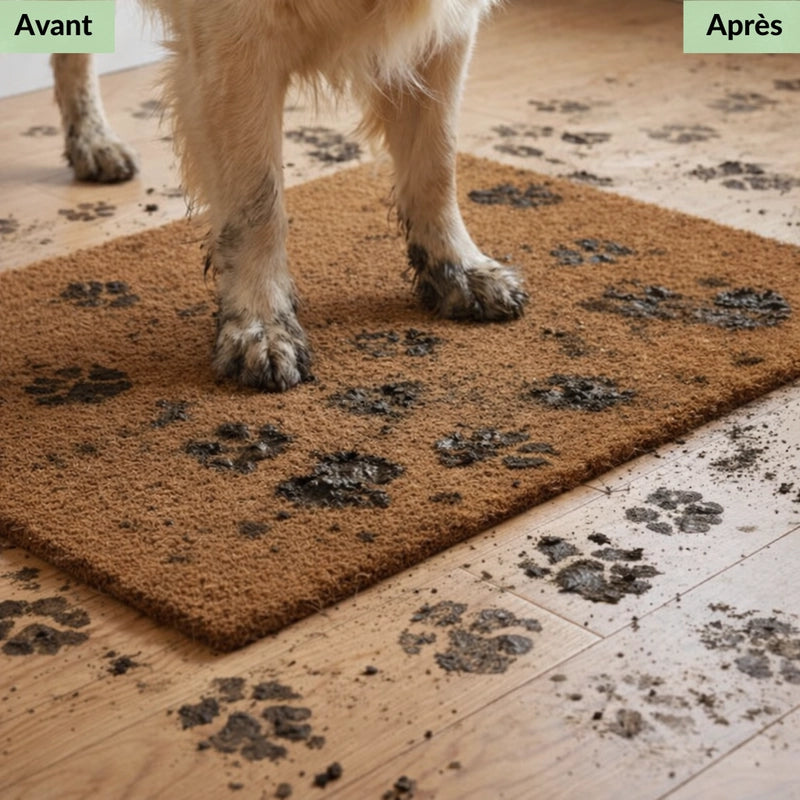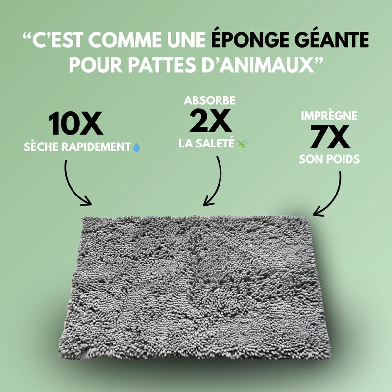 Le tapis est conçu avec des fibres ultra-absorbantes qui retiennent l’eau, la boue et la saleté dès que le chien pose les pattes dessus.
